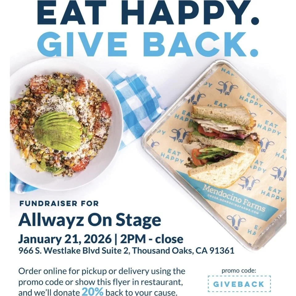 Mendocino Farms will donate 20% to Allwayz On Stage!